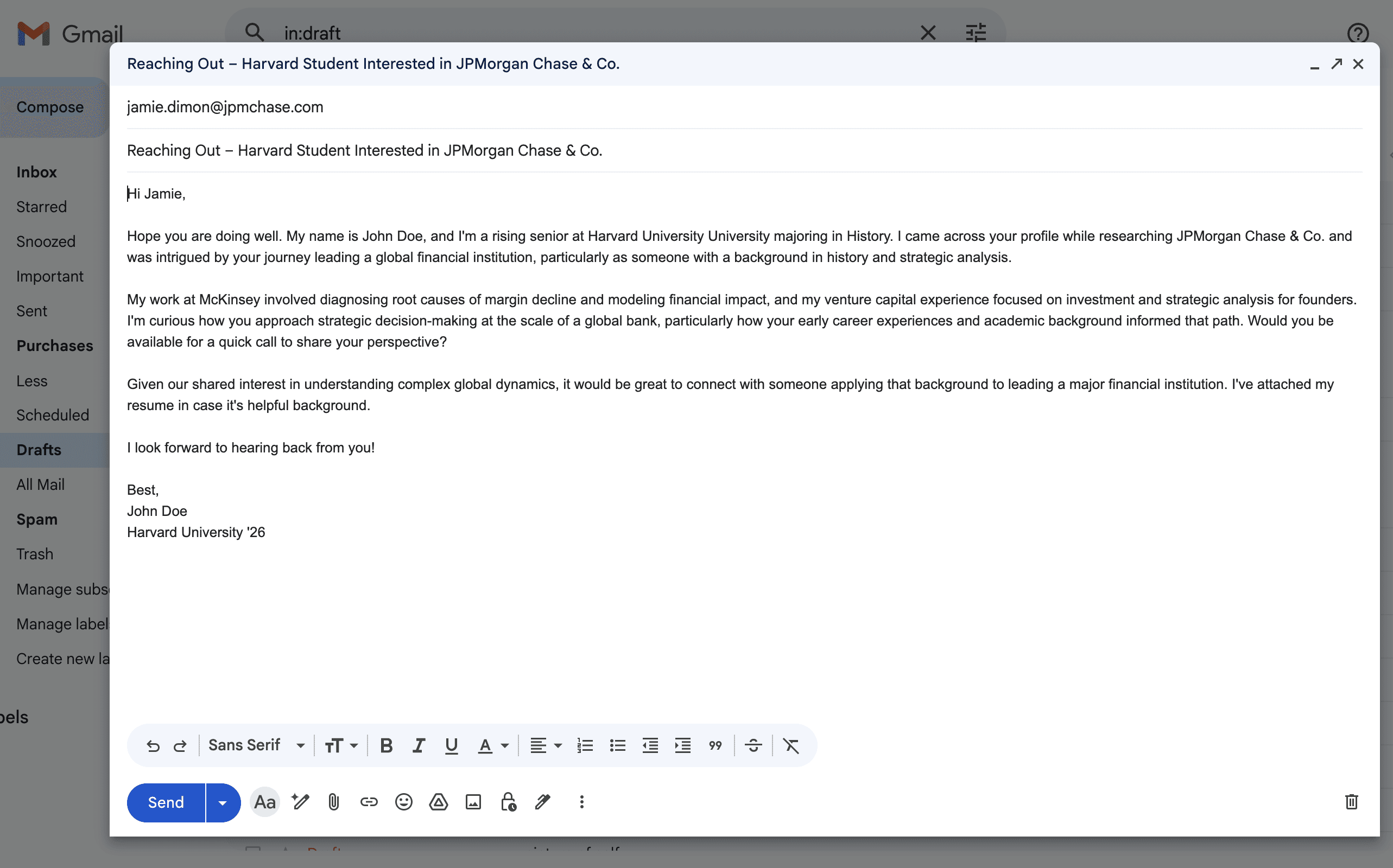 Your background is used to craft customized emails.